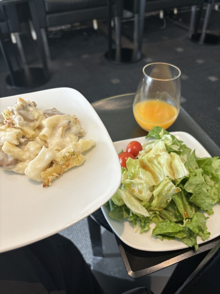 サラダとグラタン。この辺は多少航空会社ラウンジっぽさがありますかね…。