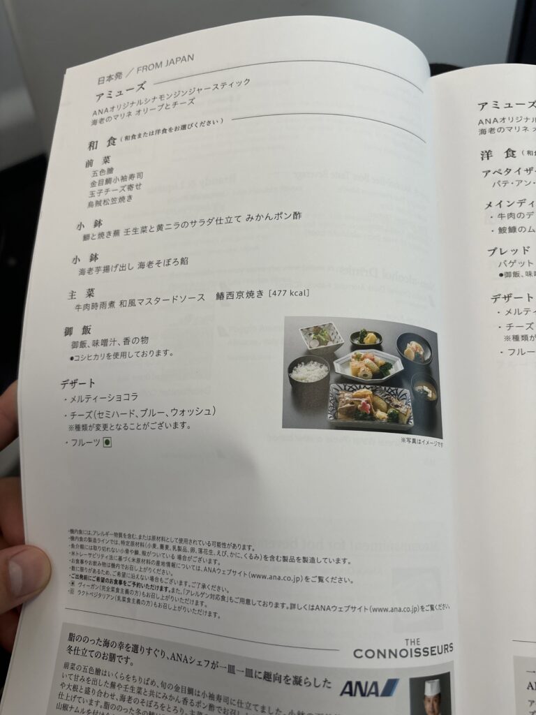 本日の機内食メニューです。事前に和食を指定済みです。