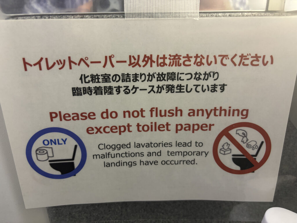 ラバトリーにはこんなでかい張り紙が。そういえばこの前ダイバートも発生しましたもんね。
