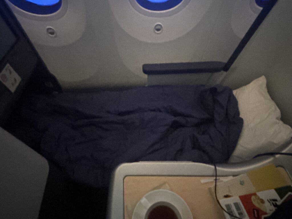 ANAのビジネスクラスはシカゴ線のThe Room以外乗ったことがなく、ANAの「標準的な」国際線ビジネスクラスを体験するのは今回が初めてでした。ANA BUSINESS STAGGEREDも、程よいプライベート感と開放感のバランスで、なかなか快適でした。