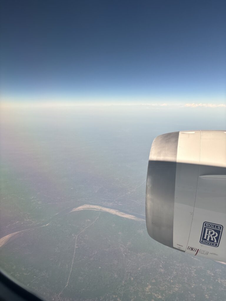 間もなく着陸。空気があまりよくないのが目視でもわかります。(でもこれはましなほうなのだとか…?)