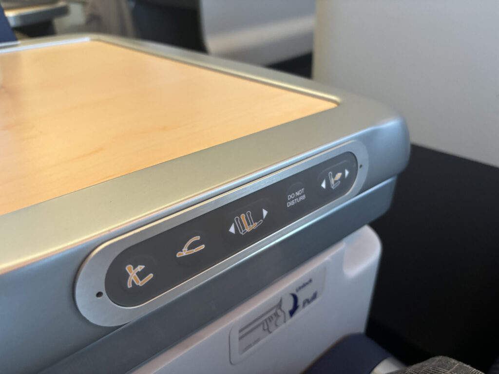 そういえばこのサイドテーブル周りの作りは、77Wと789で大きく違います。789はサイドテーブルの下からメインテーブルが出てくる仕様で、こちらのほうが使いやすい印象です。