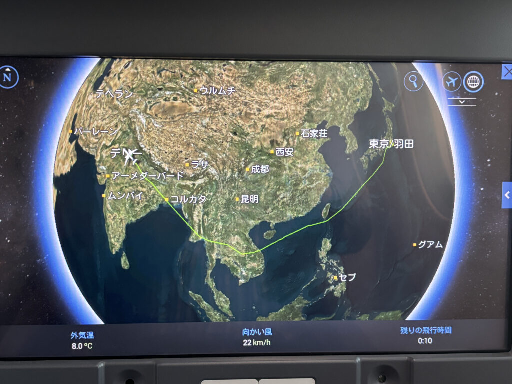 今回はANAの羽田発デリー行きのビジネスクラス搭乗記です。このフライトは偏西風に向かい飛ぶため飛行時間は10時間を超え、欧米線に近い機内サービスを体験できます。